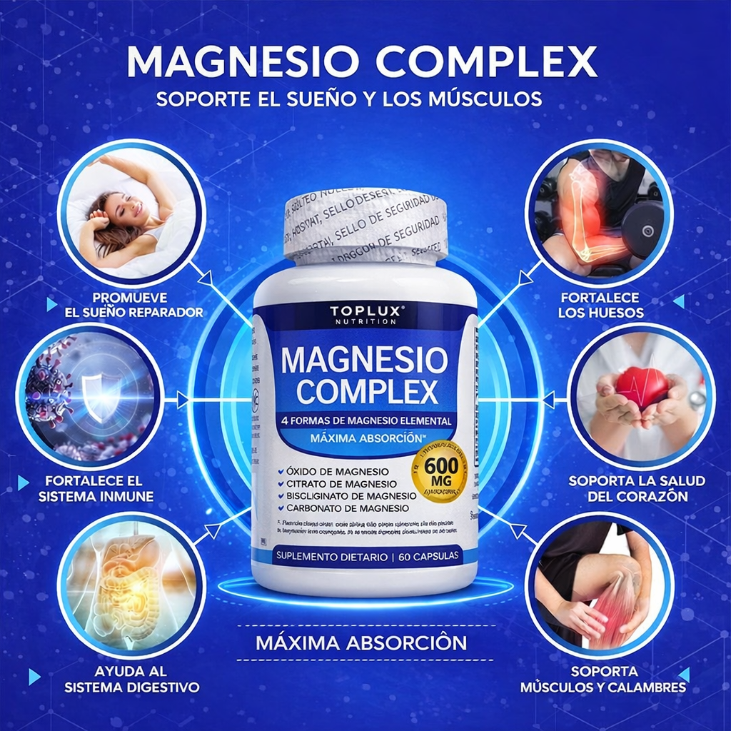 Magnesium Complex 8 magnesio en una capsula 600mg 1 mes de tratamiento